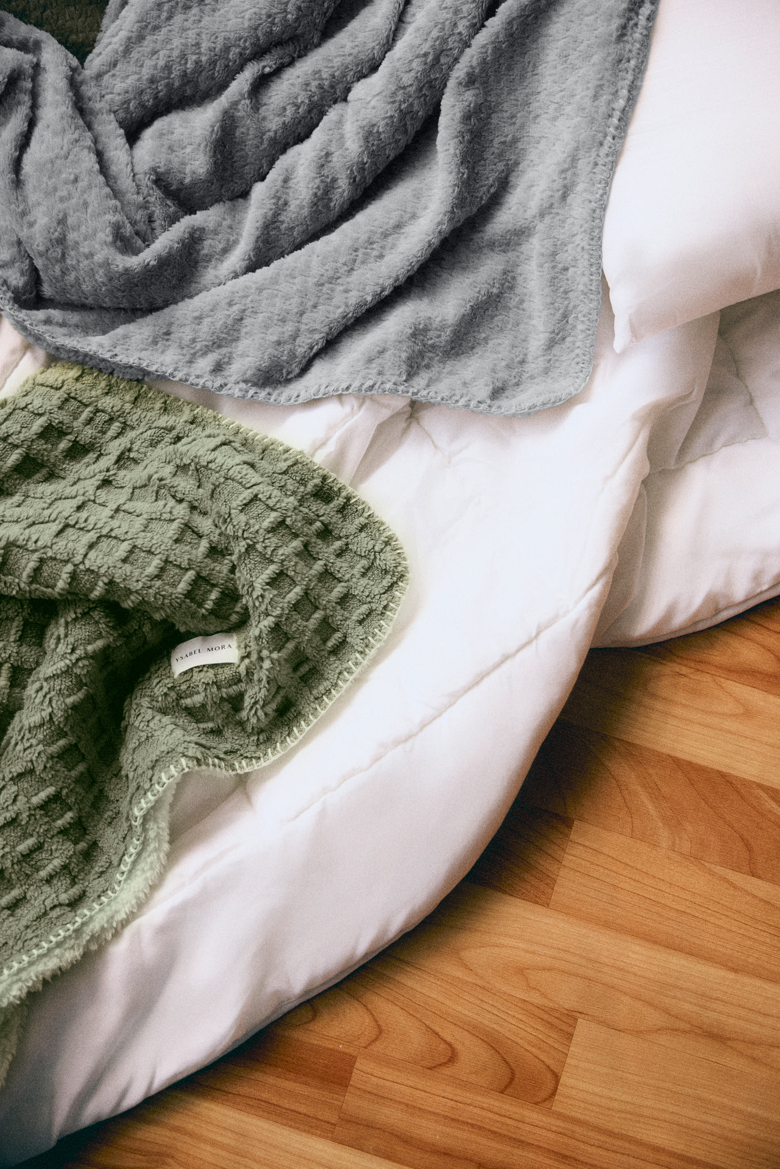 Pack hiver couverture et chaussons imprimé ethnique bleu
