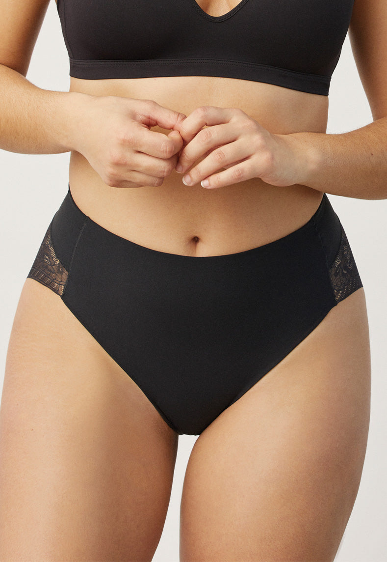 Dentelle de lingerie et microfibre veloutée au toucher doux et enveloppant..
